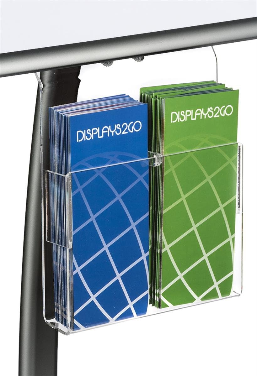 This floor sign stand is excellent as an advertising or information kiosk. The aluminum snap frame at the top of the stand displays an 11x17-inch graphic or poster. This sign holder comes with a non-glare, clear PVC lens. The entire unit stands at 49.3 inches tall and is made from durable aluminum. Below the sign holder is a clear acrylic literature holder. This literature pocket can be used with magazine-sized materials that measure 8.5" x 11". Optionally, the pocket can be used with an included divider which provides 2 compartments to hold 4x9" brochures or pamphlets. Overall dimensions: 14"W x 49.3"H x 15"D.