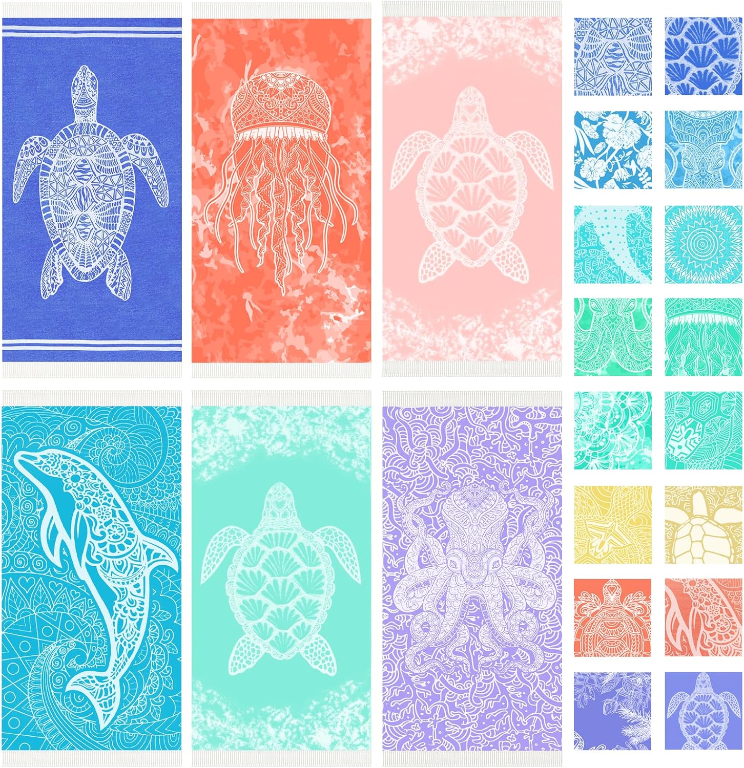 • OVERSIZED AND MULTI:70% Cotton,30% Polyester.This turkish beach towel,including the fringes,offers ample space for various outdoor activities.Whether at the beach,on a picnic,or camping,its large size makes it perfect for family gatherings,friendly picnics,or creating a cozy spot for your outdoor adventures